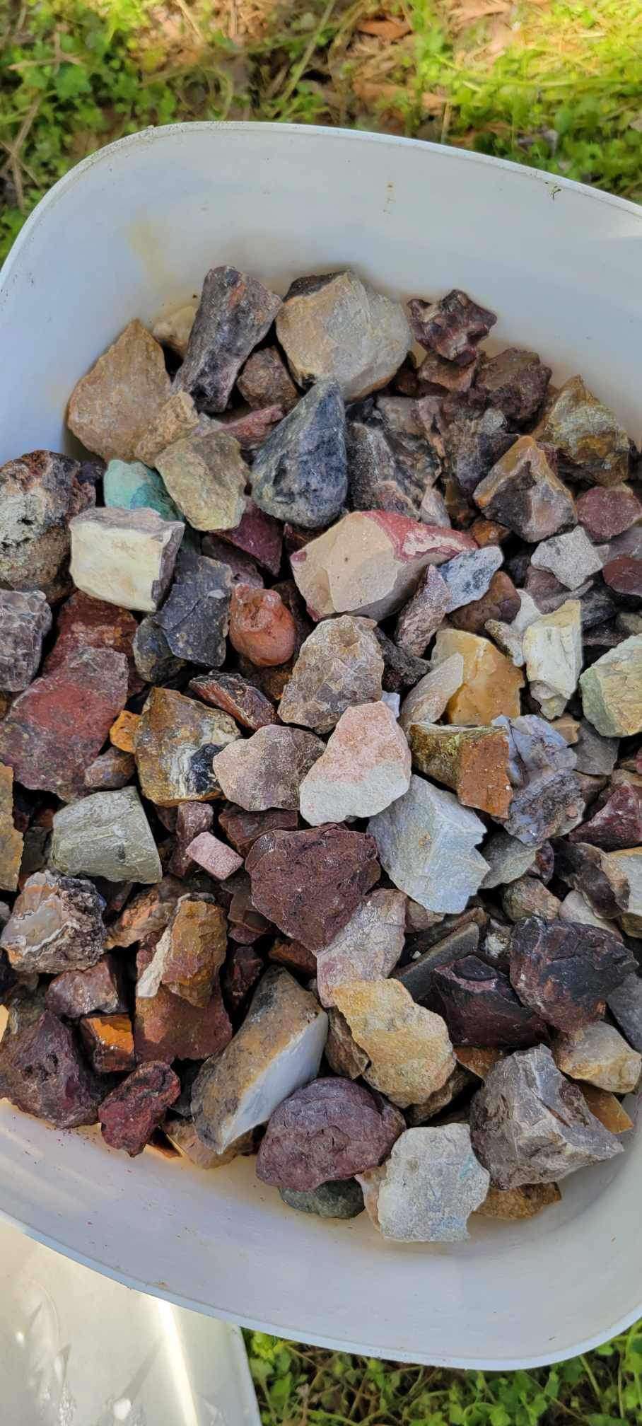 A huge mix of bulk rock perfect for lapidary projects, cabbing and rock tumbling! This rock comes from an old rockshop in Utah that went out of business. SOLD PER POUND! Does not come crushed. Bulk rock deal does not qualify for FREE SHIPPING.