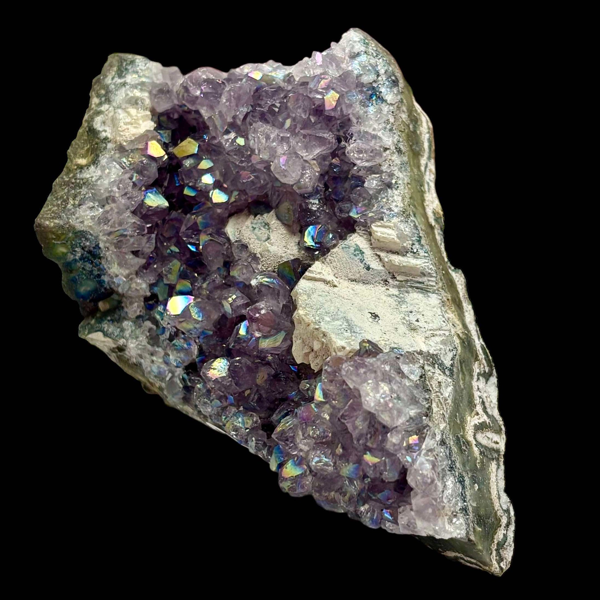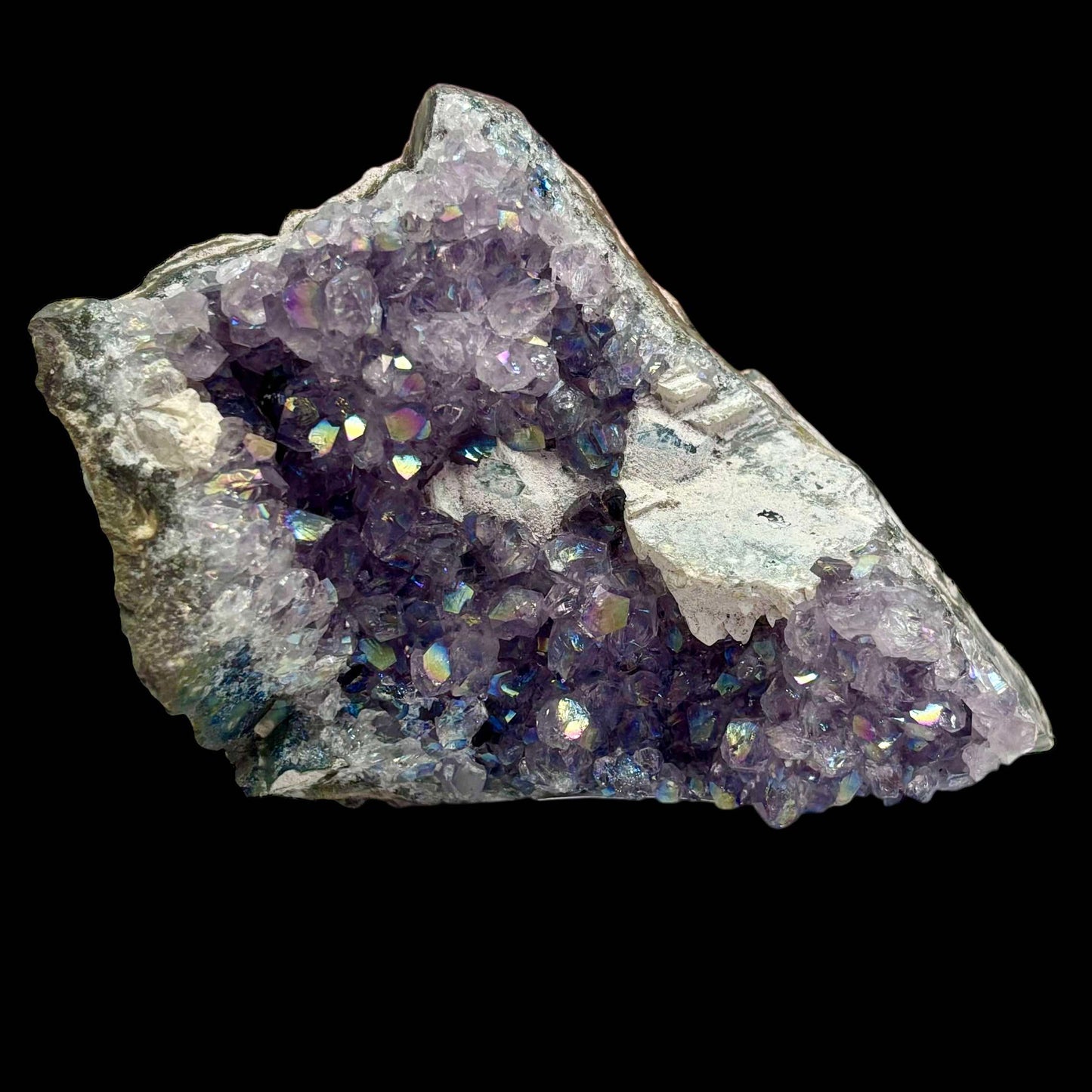 Amethyst's name is derived from the Greek word "ametusthos" which loosely translates into "not intoxicated" and in legends, it was associated with the wine goddess Bacchus. Today Amethyst is known as the "all-healer" and is one of the most effective crystals for healing people, animals, and plants.