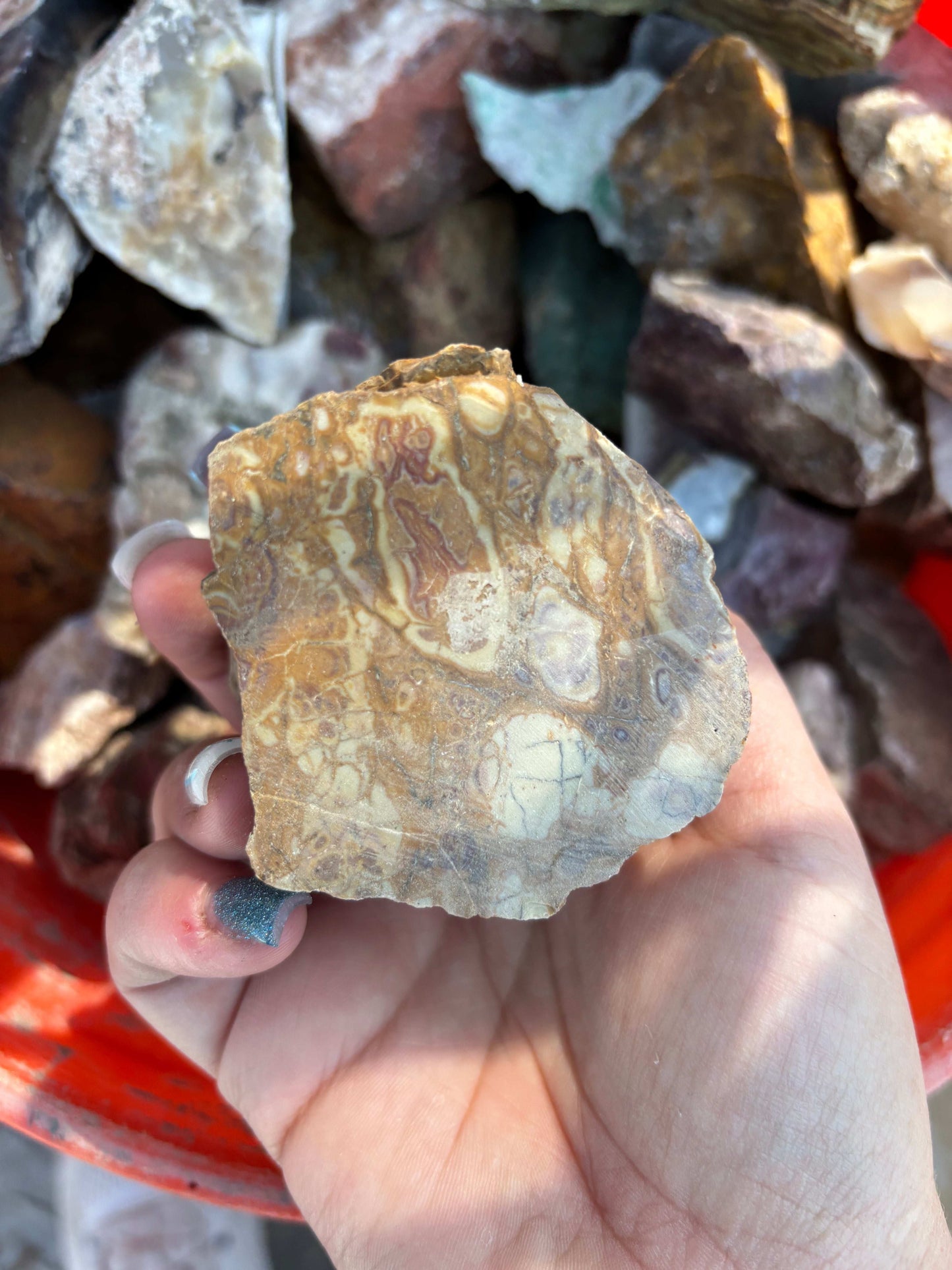 A huge mix of bulk rock perfect for lapidary projects, cabbing and rock tumbling! This rock comes from an old rockshop in Utah that went out of business. EACH BOX WEIGHS 35LBS TO 50LBS at the standard $4 per pound this would come to over $115 to $250!!! Choose between larger stones for lapidary or 1" to 2.5" stones for tumbling in the dropdown.