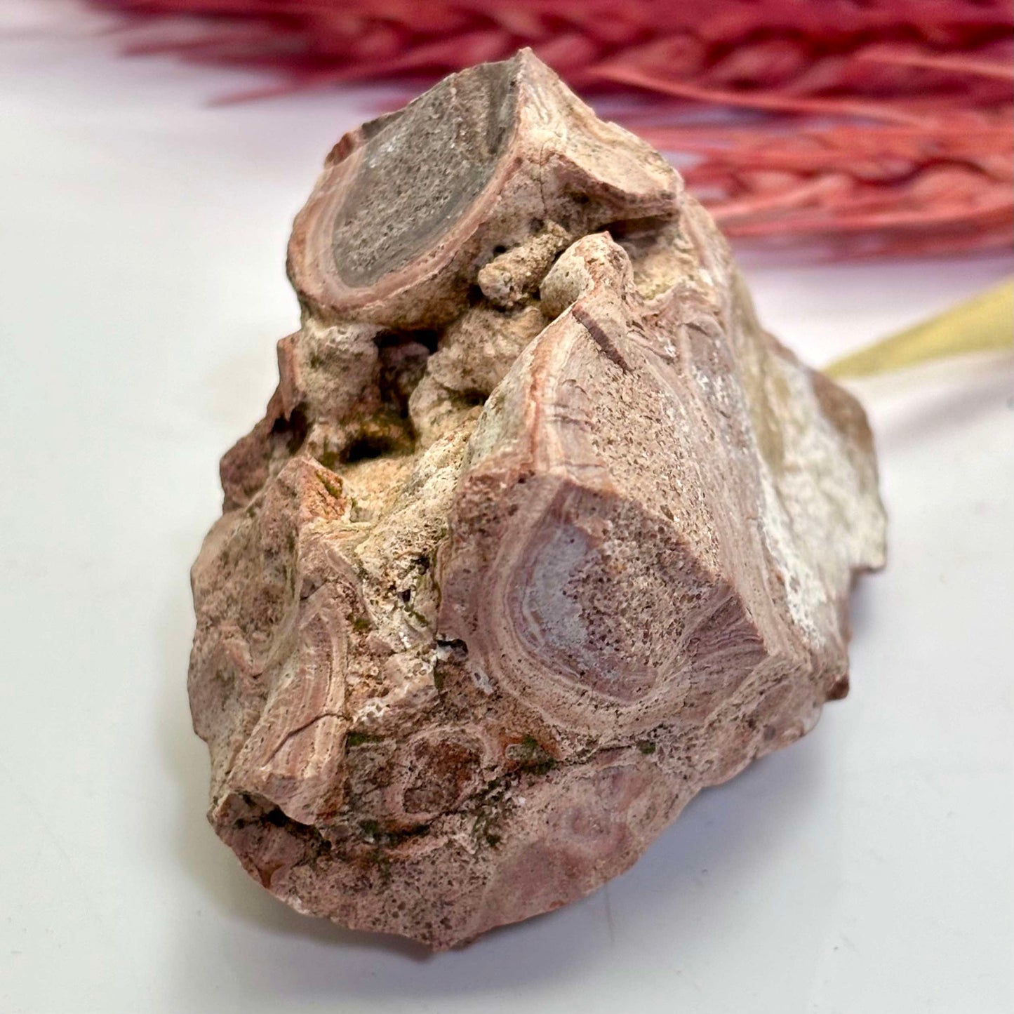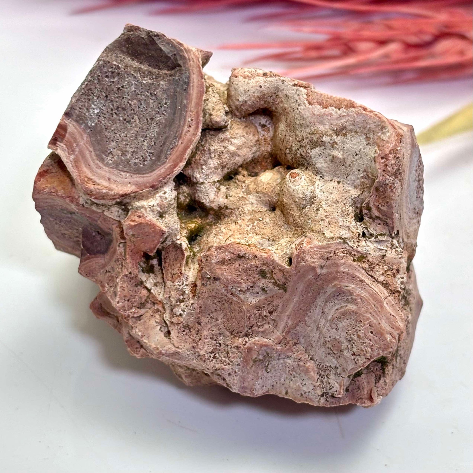 Orbicular Rhyolite is a captivating volcanic rock known for its unique orb-like patterns, which are formed by the cooling and crystallization of lava. This intriguing stone goes by several alternative names globally, including "Ocean Jasper," particularly in Madagascar, where its stunning orbs resemble oceanic landscapes. In other regions, it may be referred to as "Rhyolitic Orbicular" or simply "Orbicular Granite." The patterns found in Orbicular Rhyolite are not only visually striking but also carry deep metaphysical meaning; they are often associated with growth, stability, and connection to the earth. Believers in crystal healing regard this stone as a powerful ally for personal transformation, helping individuals to embrace change and foster a sense of harmony within themselves. With its rich history and enchanting appearance, Orbicular Rhyolite is treasured by both collectors and those seeking spiritual enlightenment, making it a sought-after addition to any crystal enthusiast’s collection.